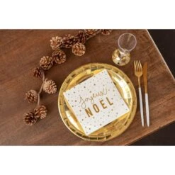 Con stelline e scritte color oro su uno sfondo bianco, questi tovaglioli sono perfetti per realizzare un tavolo elegante.