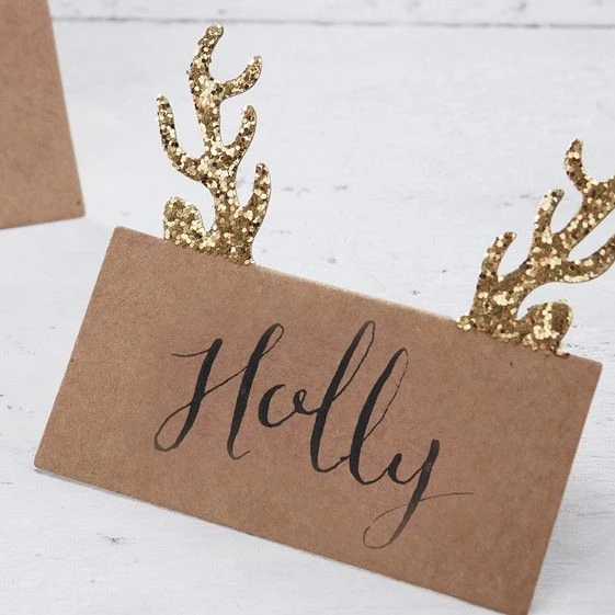 Decora la tua tavola con questi segnaposto in carta kraft dai dettaglin con glitter dorati.