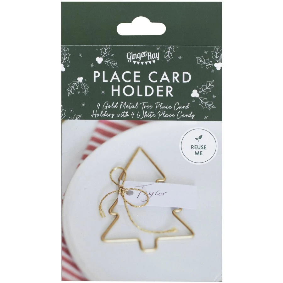 - 4 segnaposto albero di Natale dorati con etichette da appendere