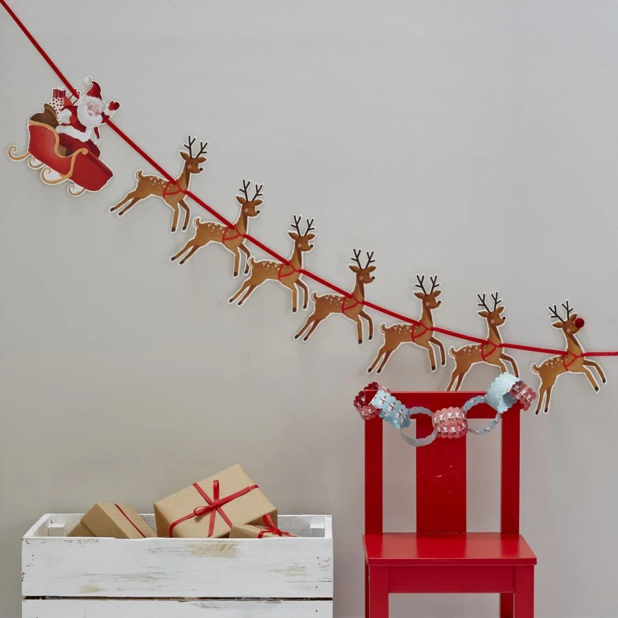 Babbo Natale e le sue renne sono qui per aggiungere un po’ di colore e divertimento (i regali li porteranno il 25) alla tua decorazione natalizia con questa ghirlanda!