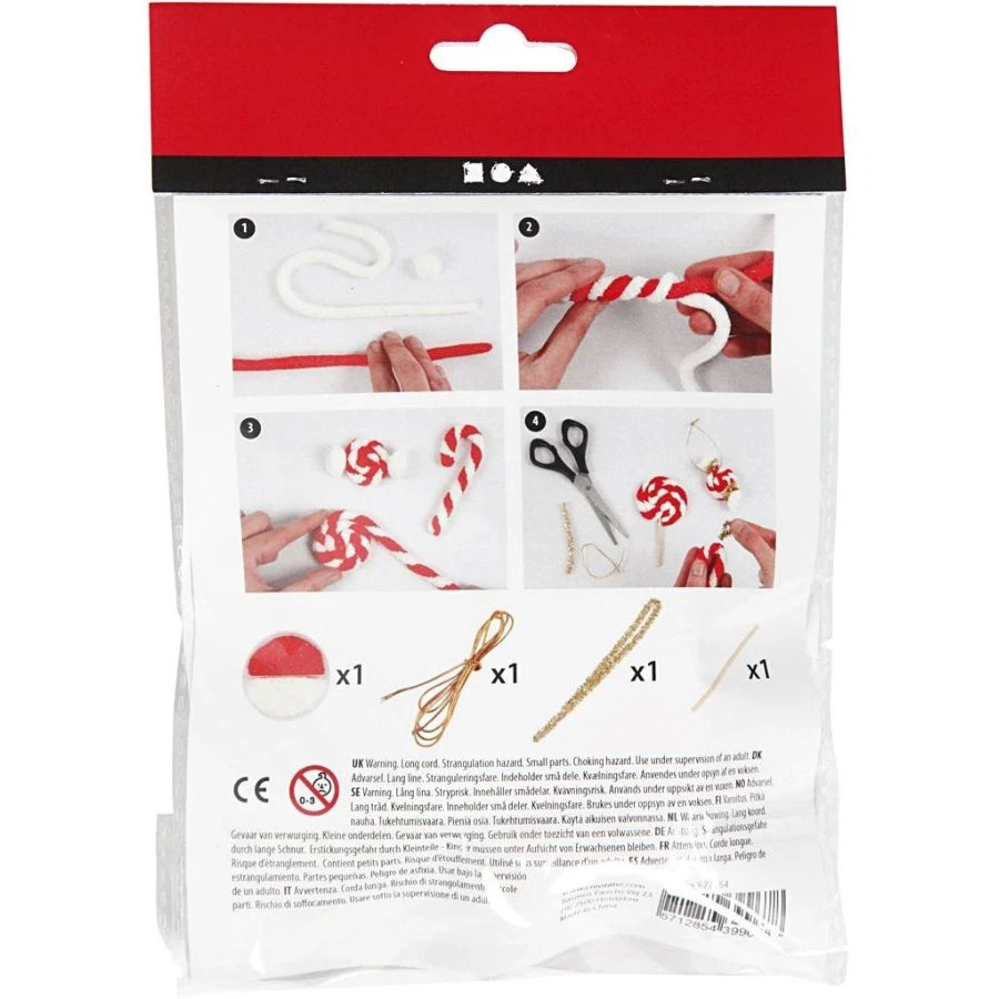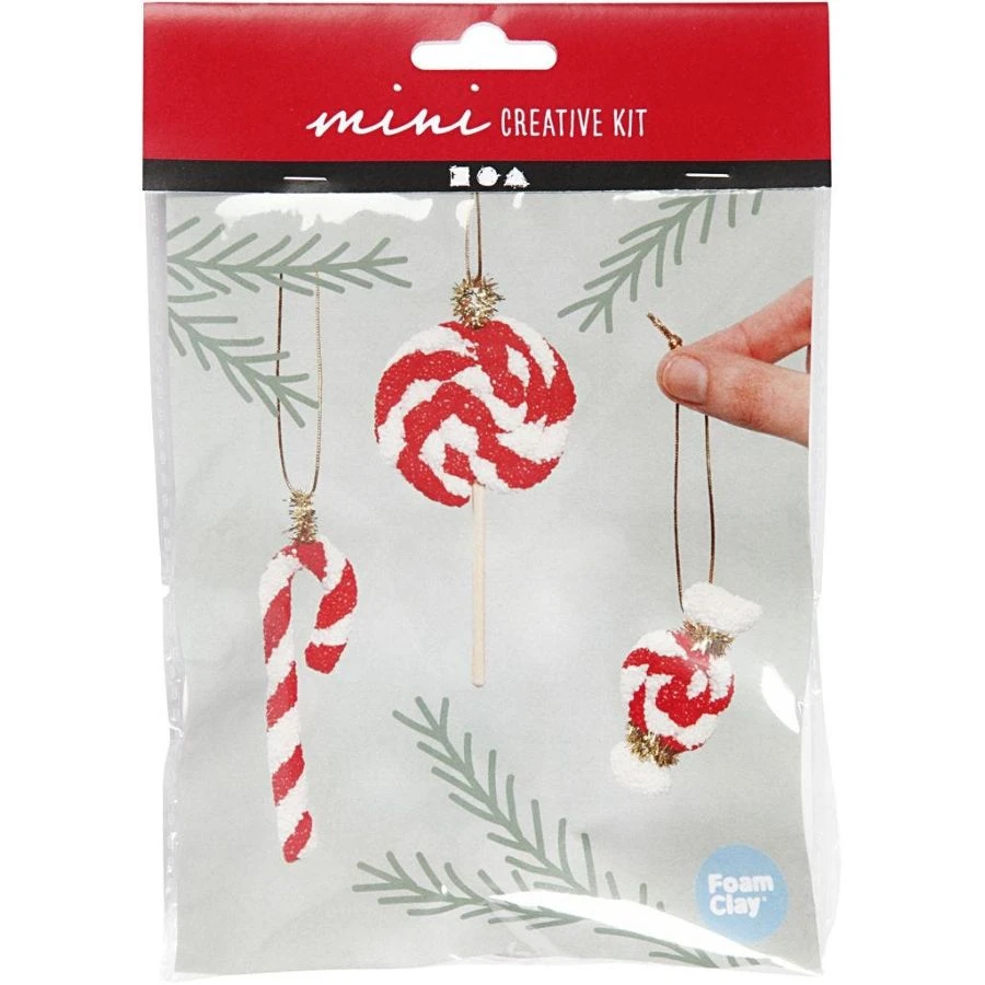 Un set di materiali creativi per realizzare un bastoncino di zucchero, un lecca-lecca e una caramella con plastilina Foam Clay con perline!